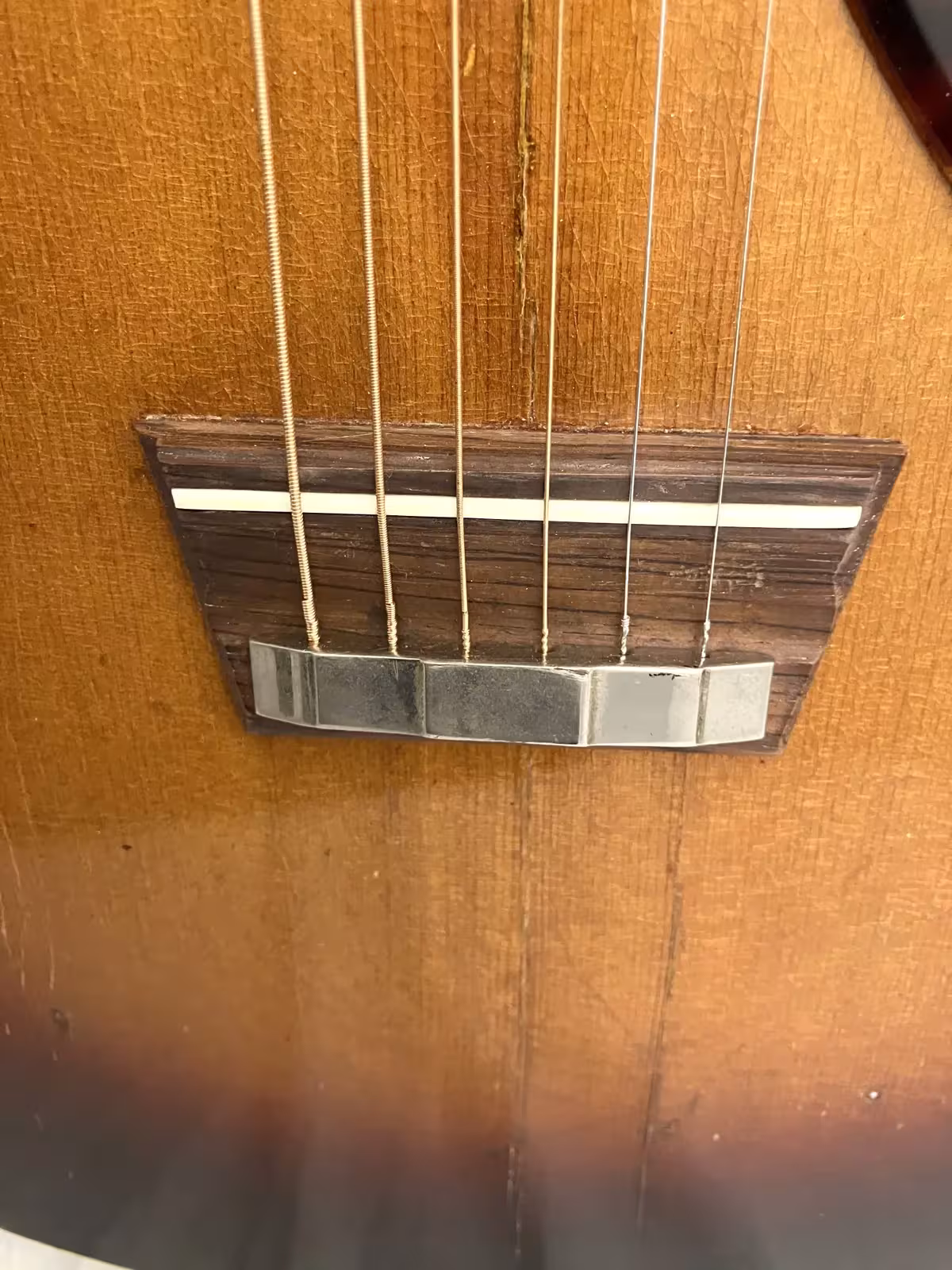 - Some repaired top cracks, slightly high action, but certainly very playable.